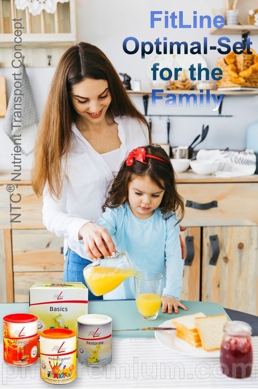 Optimal-Set Для родини включає натуральні високоякісні вітамінно-мінеральні комплекси для дорослих - Активайз, Бейсікс, Ресторейт і комплекс вітамінів та мінералів для дітей - Пауер Кокейль Джуніор.