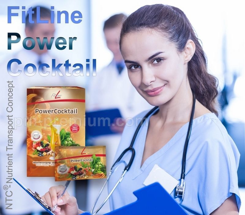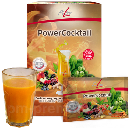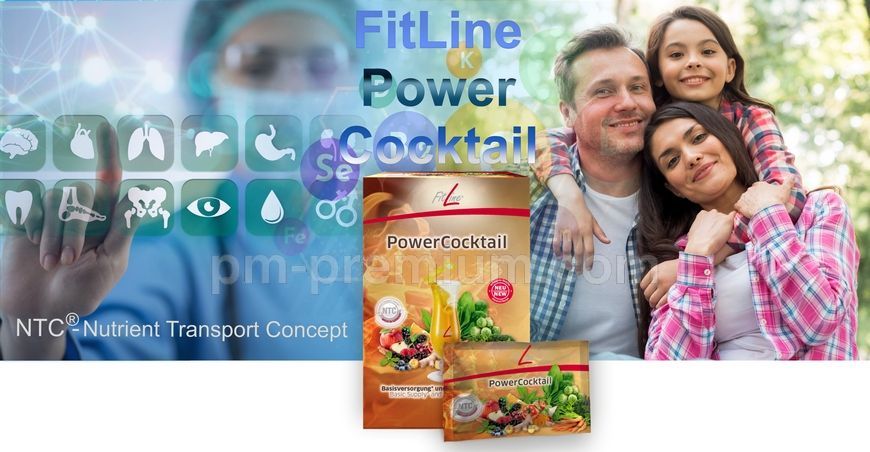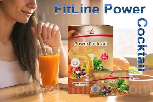 PowerCocktail FitLine - ексклюзивна та запатентована розробка вчених Міжнародної Наукової ради німецької компанії PM-International, комплекс вітамінів з високим відсотком біозасвоєння. Включає в себе велику комбінацію життєво важливих речовин: вітаміни групи В, вітаміни С, Е, антиоксиданти, розчинну і нерозчинну клітковину, рослинні ензими, пробіотичні культури, селен, безліч цінних натуральних екстрактів з високоякісних ягід, фруктів, овочів в тому числі, що містять поліфеноли.